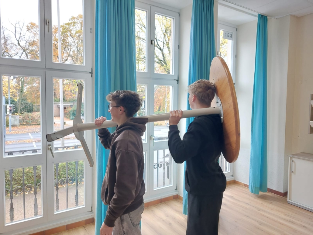 Seit Anfang November hat unsere Schule eine neue Mediothek mit vielen neuen Möbeln, z.B. neuen Tischen um zu lesen und nach Absprache auch zum Lernen. Dazu gibt es auch einige neue Sitzmöglichkeiten, welche sehr bequem sind. Ebenfalls wurden auch ein paar Möbel umgestellt, sodass es eine schöne angenehme Sofaecke gibt. Insgesamt sieht die Mediothek jetzt ordentlicher und größer aus. Auf den Fotos sieht man die 10a, die beim Einräumen geholfen hat. Schaut doch mal vorbei. (von Lana, 9d)